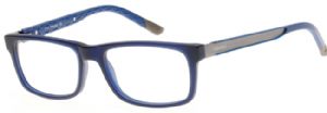 Dark Blue Front with Shiny Blue temples with Gunmetal Trim (shown)(DB), Matte Black with Gumetal Temple Trim and Orange Temple Tip (MB), or Matte Brown with Dark Brown Temples and Brown Metal Temple Trim (BB)